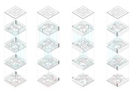 The interior of the house is a continuous space in plan and section. Centrifugal and centripetal at the same time, worked in section to be able to differentiate the different units that make up the program of necessities. Centrifugal towards its structural heart where stairs, server rooms and facilities are concentrated; centripetal towards the forest, to which the homomorphic spaces are projected where the collective life will develop.