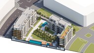 Su configuración definitiva, tiene que ver con el correcto soleamiento de cada una de las viviendas, y la búsqueda de unos volúmenes continuos de máxima compacidad que las envuelva.