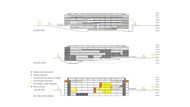 Si bien por criterios de funcionalidad y distribución de programa así como por la ya mencionada implantación en la parcela la orientación oeste puede resultar no tan favorable. Por este motivo se aplican medidas compensatorias como la instalación de lamas orientables en esta fachada oeste o la existencia de voladizos en la planta ático de despachos de profesores o en la zona de entrada en planta acceso.